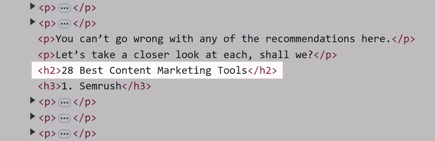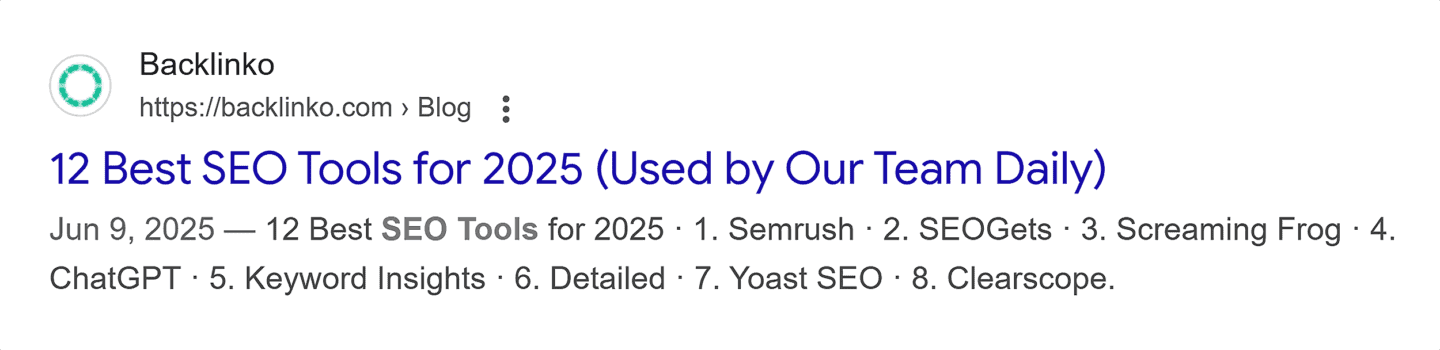 例如,我们关于 SEO 工具的文章 的 title tag(和 H1)包含了修饰词“最佳”。