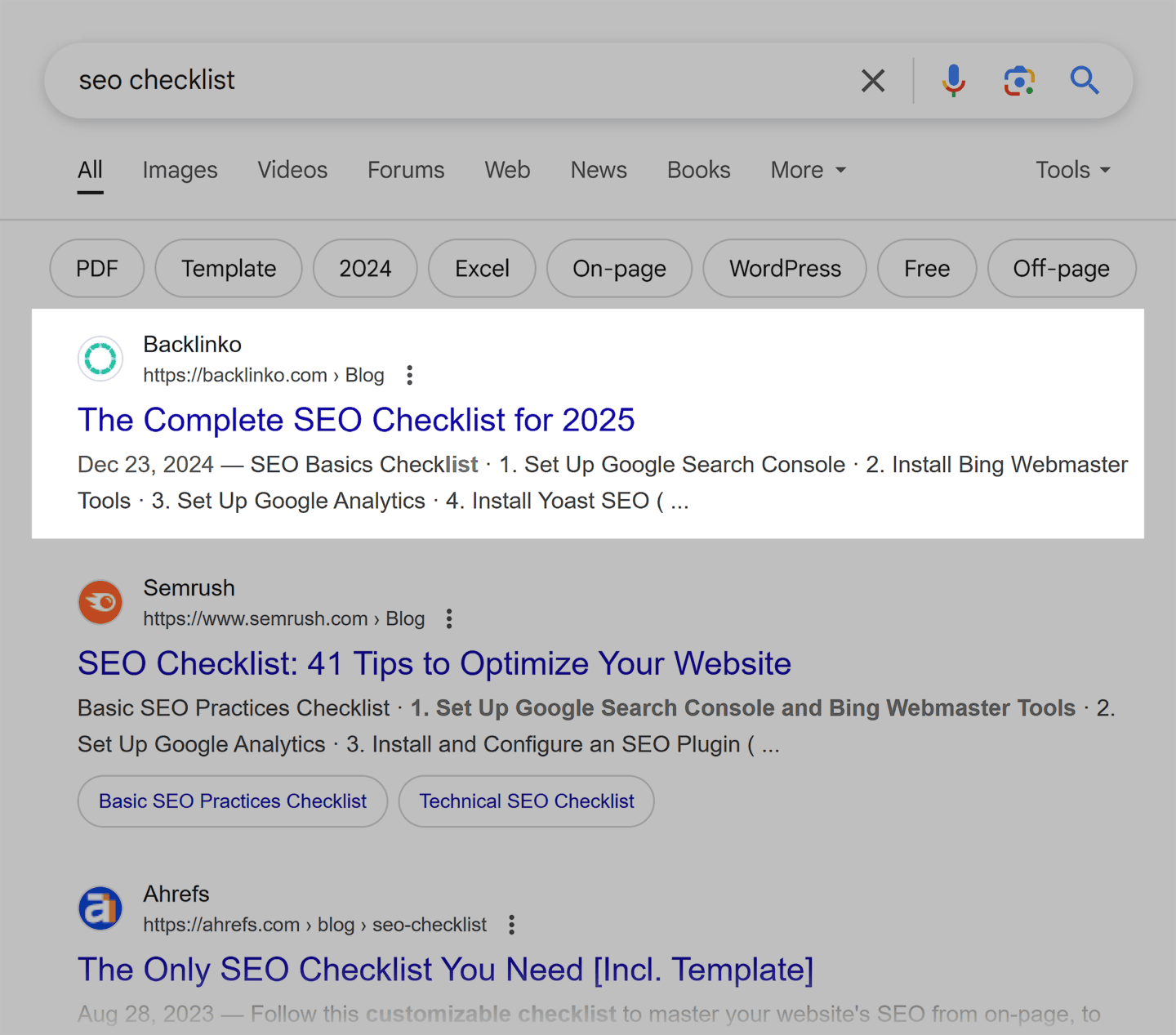 使用清单确保您在更新内容时涵盖了 on-page SEO 的所有最重要方面: