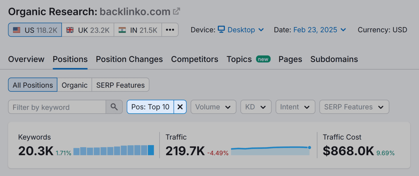 您可以使用像 Semrush 的 Organic Research 这样的工具找到这些搜索词。