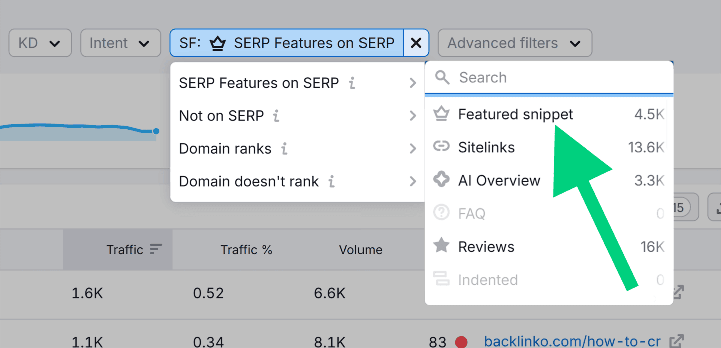 这意味着您需要找到既有 featured snippet 又您已经排名的第一页结果。