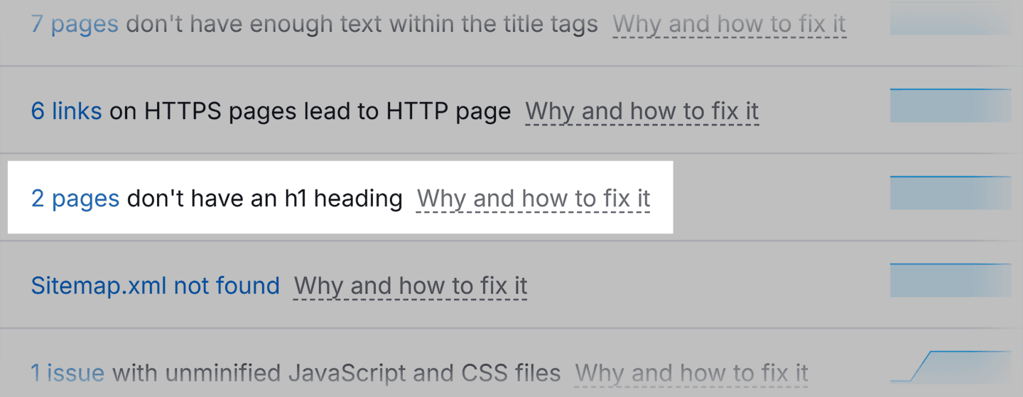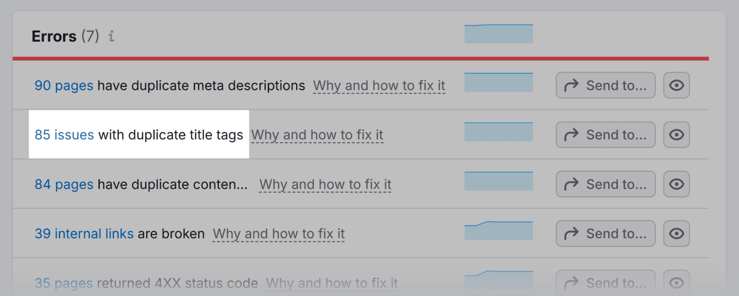 网站爬虫,如 Semrush 的 Site Audit 工具,可以帮助识别没有 title tag 或有重复标题的页面。