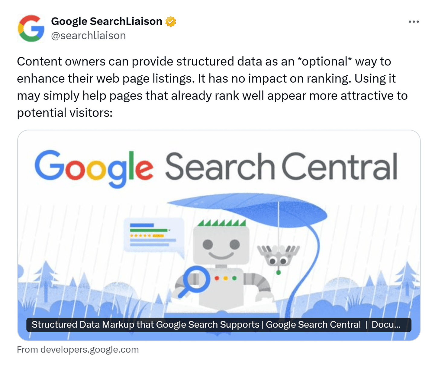 Schema(一种 structured data)不会直接帮助您的 SEO。